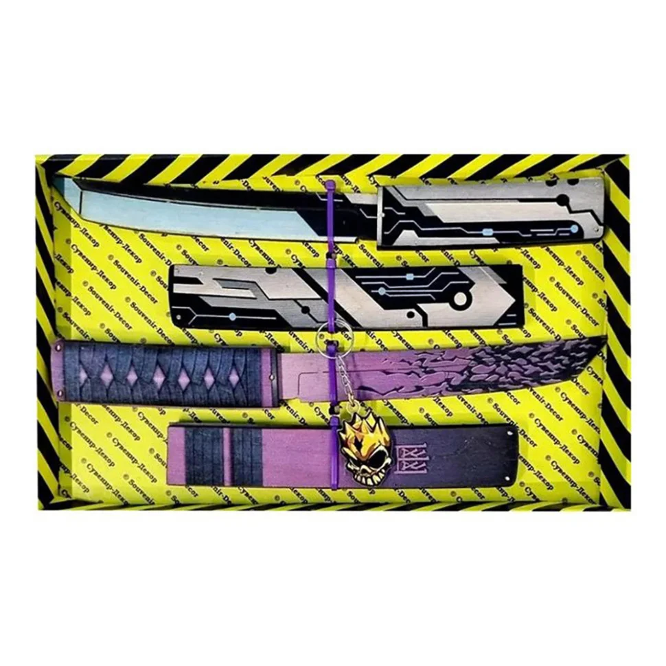 Набір сувенірних ножів - Legacy транзистор і Tanto рестлес. Матеріал: фанера. Довжина ножа - 28 см. Чудовий подарунок-сувенір, у комплекті є брелок. Ножі дерев'яні, якісні та міцні. Не заточені, гострі частини закруглені та зашліфовані, повністю безпечні. Для дітей від 6 років.