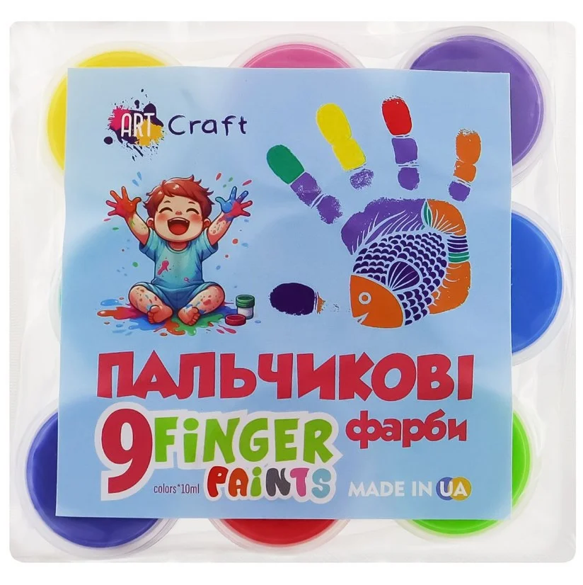 Набір пальчикових фарб ART Craft містить 9 яскравих кольорів по 10 мл, створених спеціально для маленьких художників