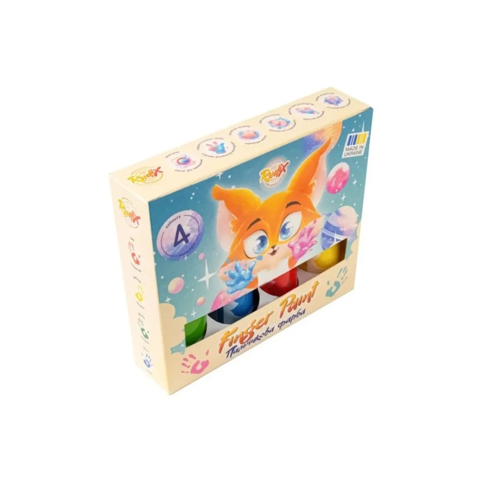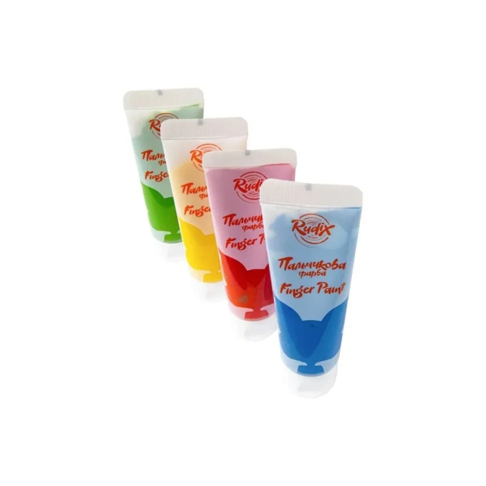 Пальчикові фарби RUDIX підходять для різноманітних видів творчості. Зручне пакування містить 4 яскравих кольори по 60 мл. Фарби легко змиваються зі шкіри.