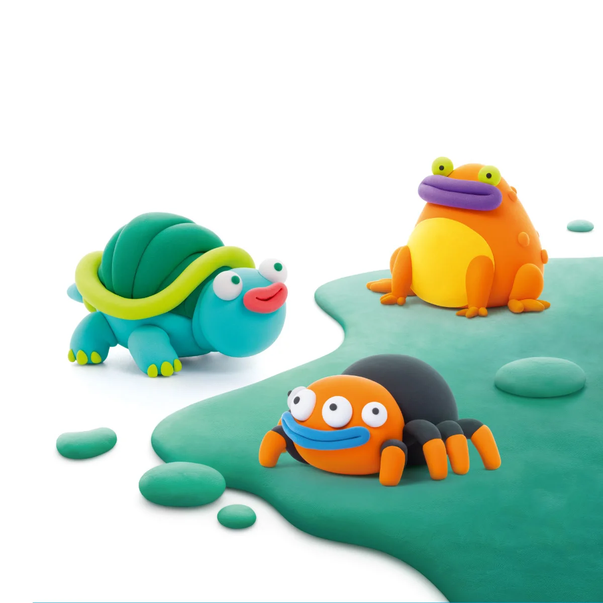 Набір пластиліну, що самостійно твердіє, ЛІПАКА - ЕКЗОТИЧНІ ТВАРИНИ: ТАРАНТУЛ, ЧЕРЕПАХА, ПОМАРАНЧЕВА ЖАБА – розважить і малюків і дорослих. За допомогою анімаційних інструкцій в застосунку HEY CLAY, Ви зможете зліпити кумедних тарантула, черепаху та помаранчеву жабу. А завдяки компактним розмірам, набір зручно брати з собою. Пластилін твердіє на повітрі протягом 24 годин, після чого можна гратися створеними фігурками.