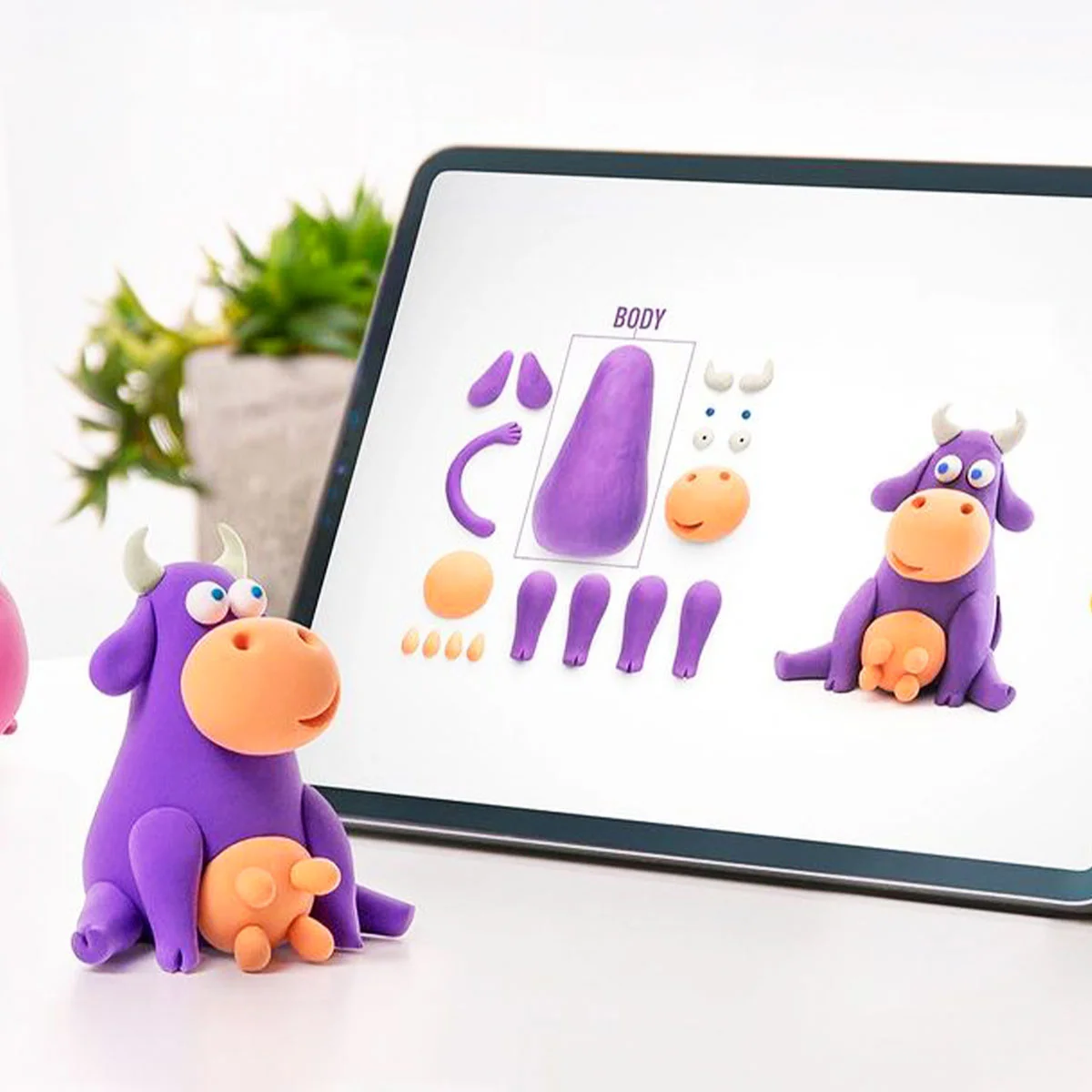 Набір пластиліну, що самостійно твердіє, ЛІПАКА – КОРІВКА, ПЕСИК, ВІВЦЯ – розважить і малюків і дорослих. За допомогою анімаційних інструкцій в додатку HEY CLAY, Ви зможете зліпити трьох кумедних тваринок. Пластилін твердіє на повітрі протягом 24 годин, після чого можна гратися створеними фігурками.