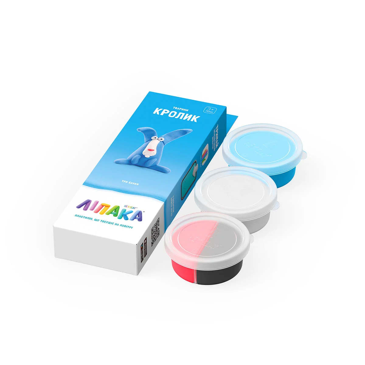 Набір пластиліну, що самостійно твердіє, ЛІПАКА – КРОЛИК – розважить і малюків і дорослих. Невеличкий набір навчить вас ліпити кумедного кролика. А завдяки компактним розмірам, набір зручно брати з собою. Пластилін твердіє на повітрі протягом 24 годин, після чого можна гратися створеними фігурками.