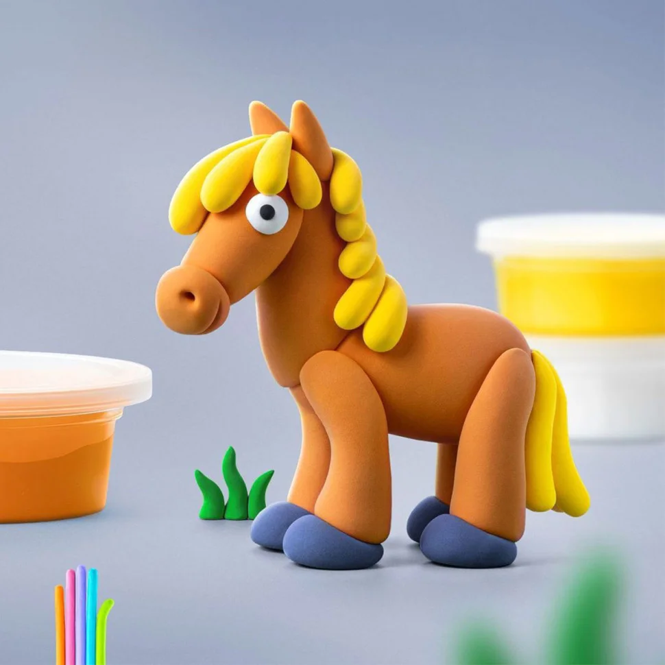Набір пластиліну, що самостійно твердіє, ЛІПАКА – ПОРОСЯТКО, КОНЯЧКА, КРОЛИК – розважить і малюків і дорослих. За допомогою анімаційних інструкцій в додатку HEY CLAY, Ви зможете зліпити трьох кумедних тваринок. Пластилін твердіє на повітрі протягом 24 годин, після чого можна гратися створеними фігурками.