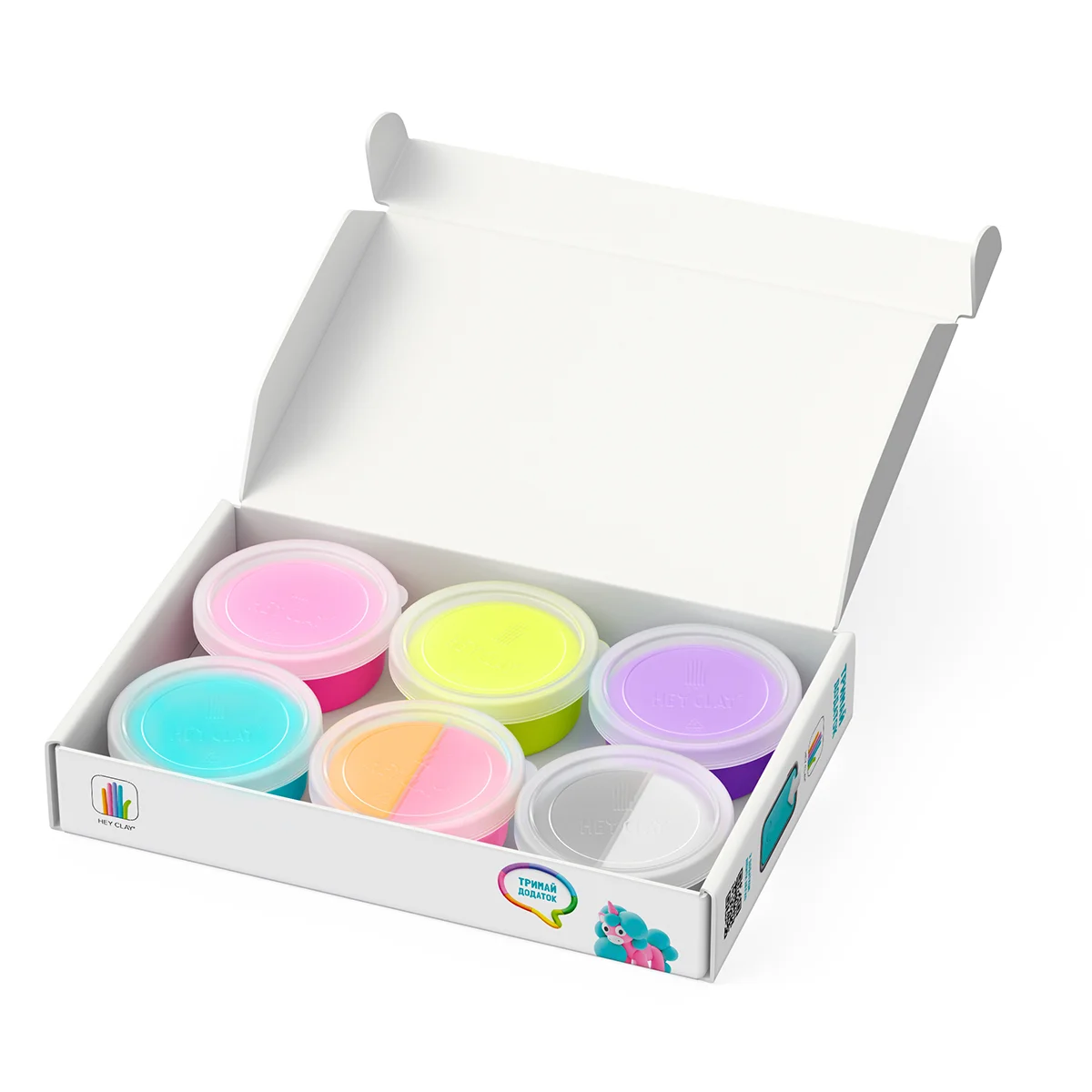 - У кожному наборі Ви знайдете код для доступу до відповідних героїв у додатку ЛІПАКА HEY CLAY з анімаційними інструкціями.