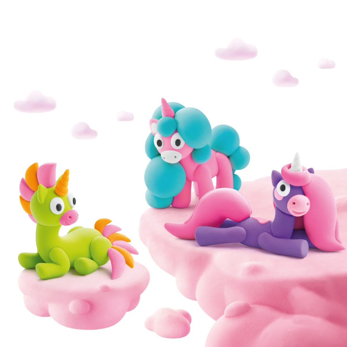 Набір пластиліну, що самостійно твердіє, ЛІПАКА - РАЙДУЖНІ ЄДИНОРОГИ: БРАЙТІ, СПАРКІ, КЛАУДІ – розважить і малюків, і дорослих. За допомогою анімаційних інструкцій в застосунку HEY CLAY, ви зможете зліпити трьох кумедних тваринок. Пластилін твердіє на повітрі протягом 24 годин, після чого можна гратися створеними фігурками.