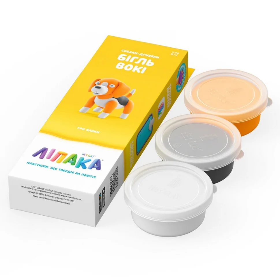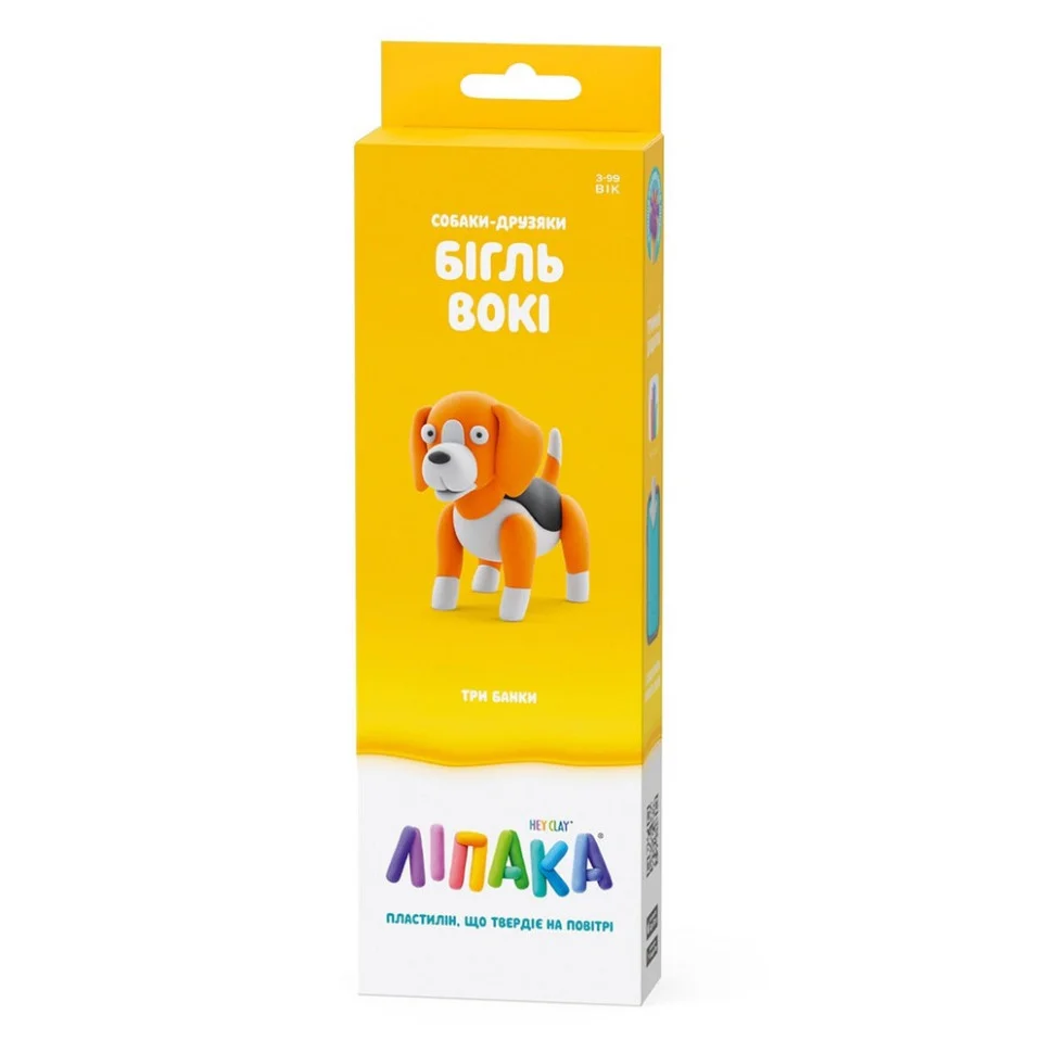 Набір пластиліну, що самостійно твердіє, ЛІПАКА – СОБАКИ-ДРУЗЯКИ: БІГЛЬ ВОКІ – розважить і малюків, і дорослих. За допомогою анімаційних інструкцій в додатку HEY CLAY, Ви зможете зліпити собаку. А завдяки компактним розмірам, набір зручно брати з собою. Пластилін твердіє на повітрі протягом 24 годин, після чого можна гратися створеними фігурками.