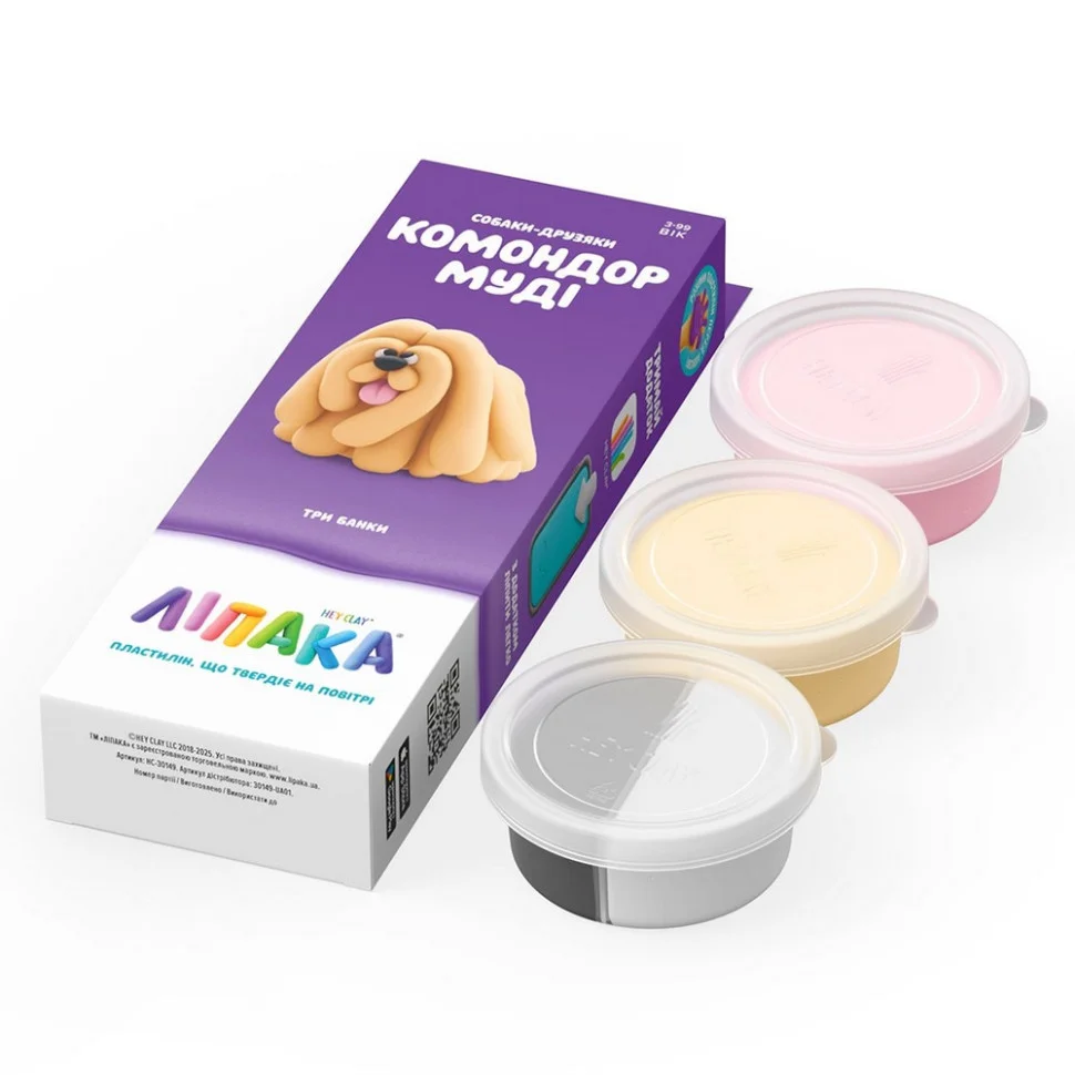 Набір пластиліну, що самостійно твердіє, ЛІПАКА – СОБАКИ-ДРУЗЯКИ: КОМОНДОР МУДІ – розважить і малюків, і дорослих. За допомогою анімаційних інструкцій в додатку HEY CLAY, Ви зможете зліпити собаку. А завдяки компактним розмірам, набір зручно брати з собою. Пластилін твердіє на повітрі протягом 24 годин, після чого можна гратися створеними фігурками.