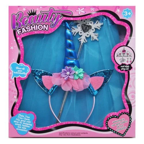 Яскравий набір прикрас зробить дівчинку зіркою будь-якого дитячого свята. У комплект входить обруч з мʼяким рогом єдинорога (діаметр обруча - 11 см), чарівна паличка та пишна спідничка на резинці, яка добре тягнеться і підійде на багато розмірів. Довжина спідниці – 30 см.