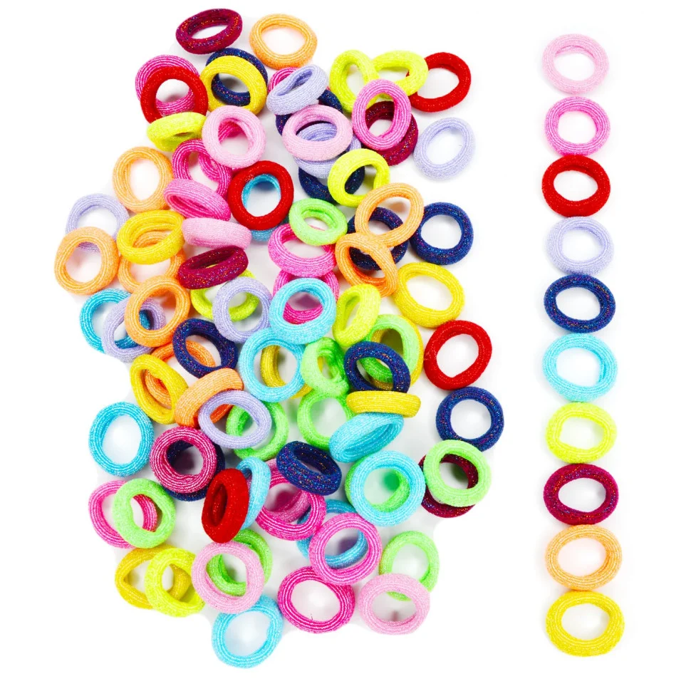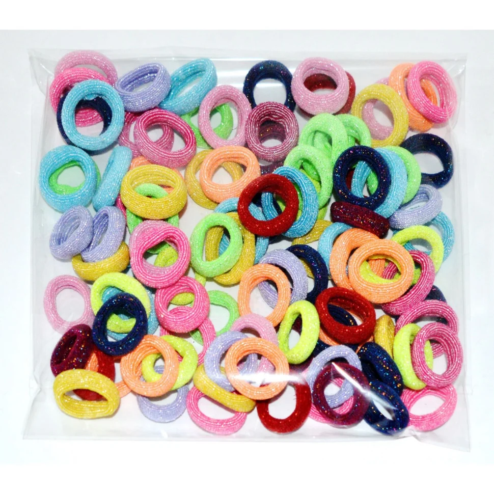 Набір резинок для волосся "Люрекс" - практичний та яскравий варіант для щоденних зачісок. У наборі 100 блискучих резинок в упаковці, які зручно використовувати вдома, у садочку чи школі.