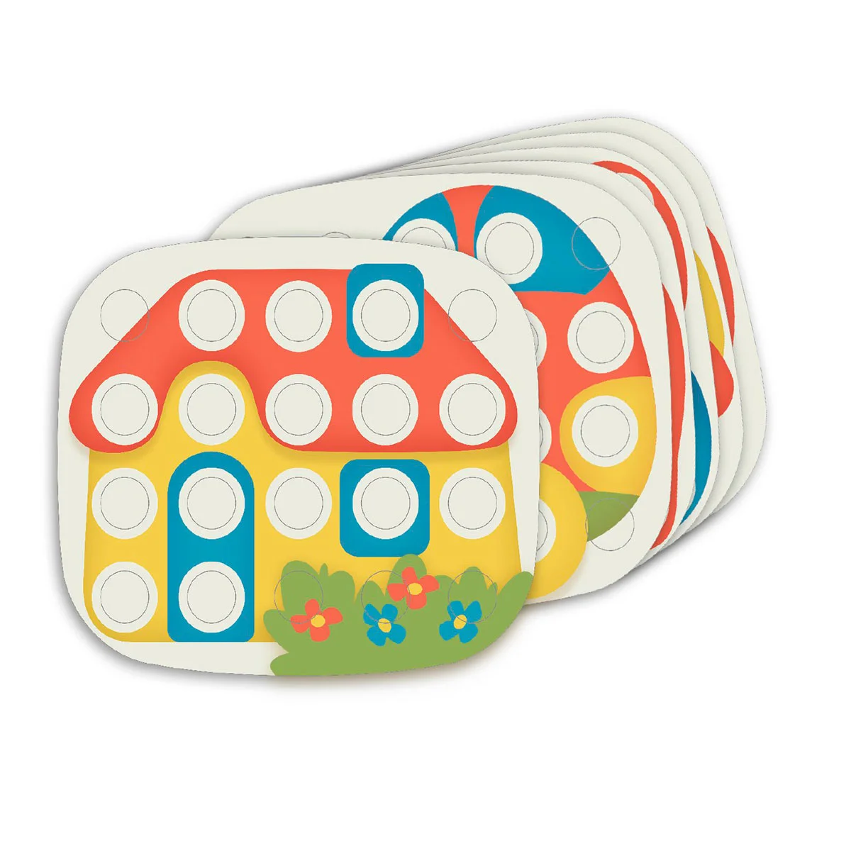 - До набору входять картинки, завдяки чому у дитини з'являється можливість навчитися розпізнаванню кольору для «розфарбовування» картинок.