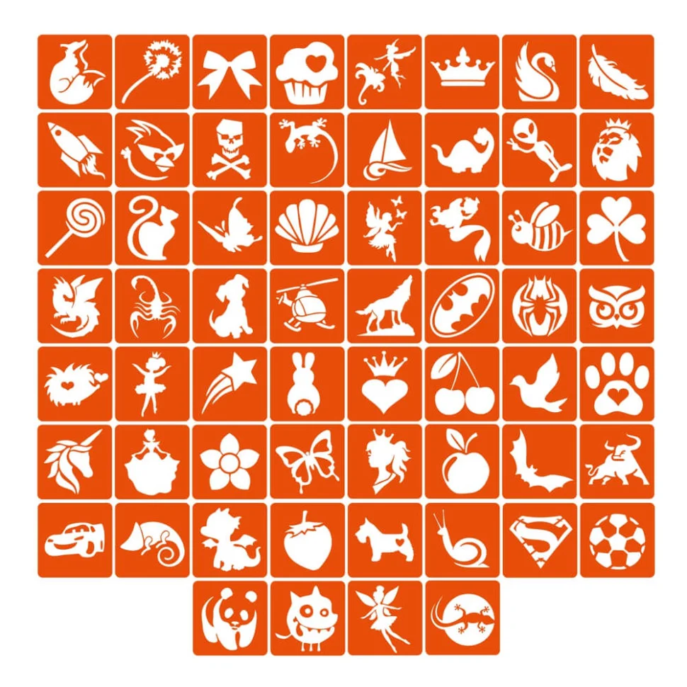 трафарети Fresh Tattoo безпечні для шкіри та підходять для нанесення тимчасових тату всіх типів: гліттер-тату, хною, оксамитом, пігментом, джагуа-гелем тощо;