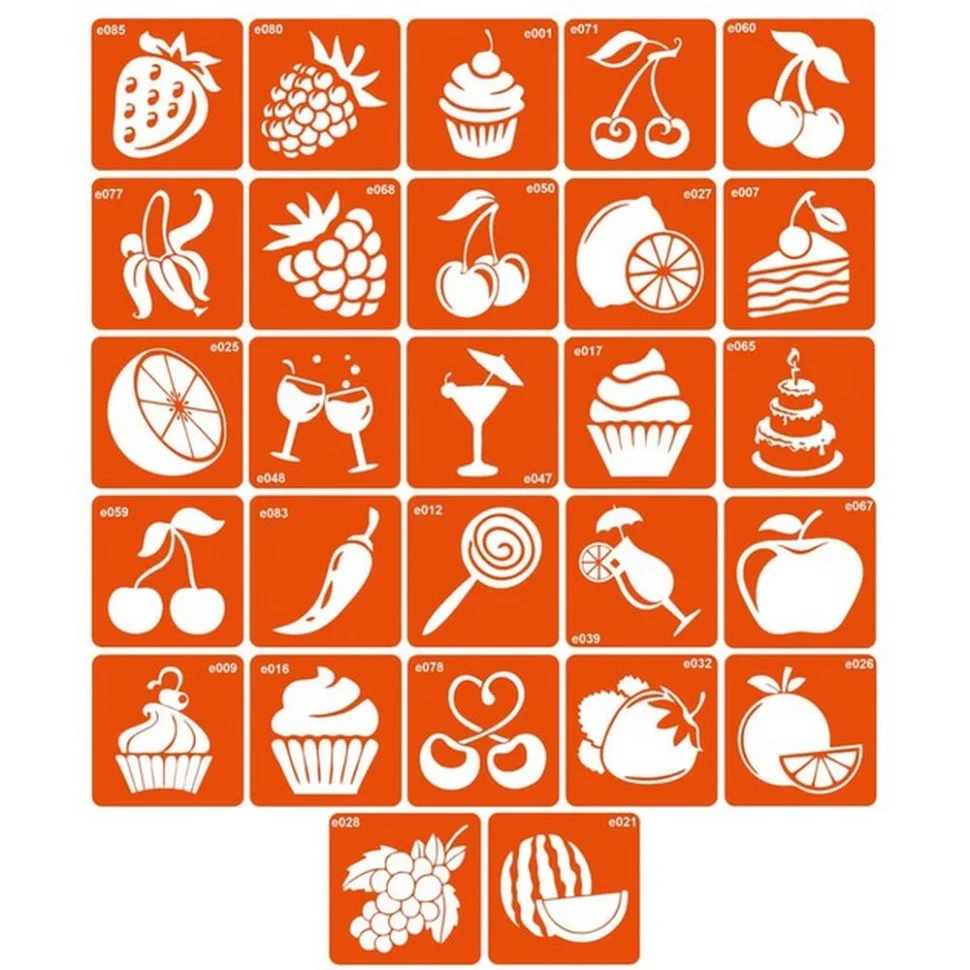 Колекція простих трафаретів їжі, 27 трафаретів 5*5 см.