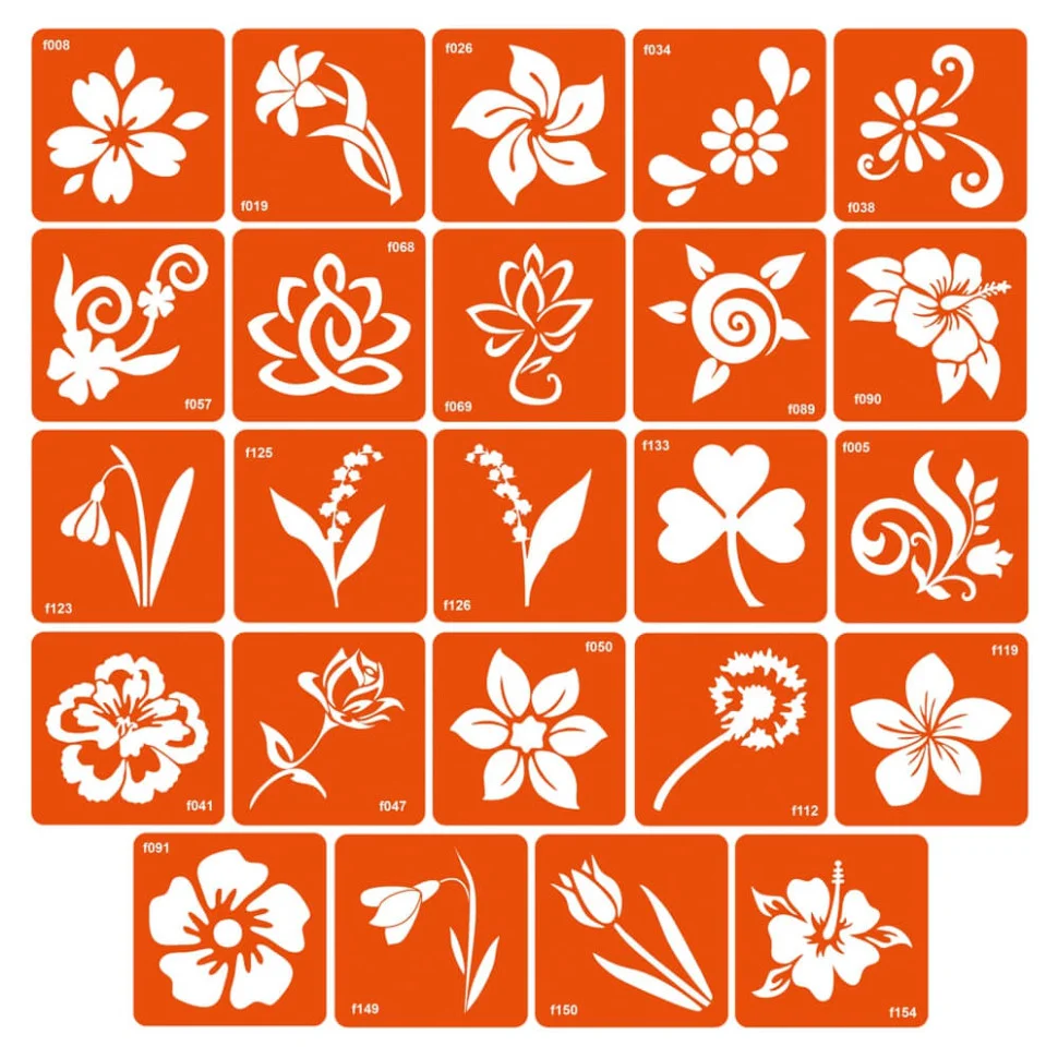 Колекція простих трафаретів квітів, 24 штуки в розмірі 6 на 6 см.