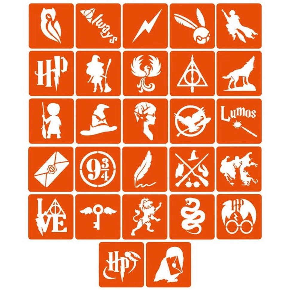 Колекція простих трафаретів «Гаррі Поттер», 27 трафаретів 5*5 см.