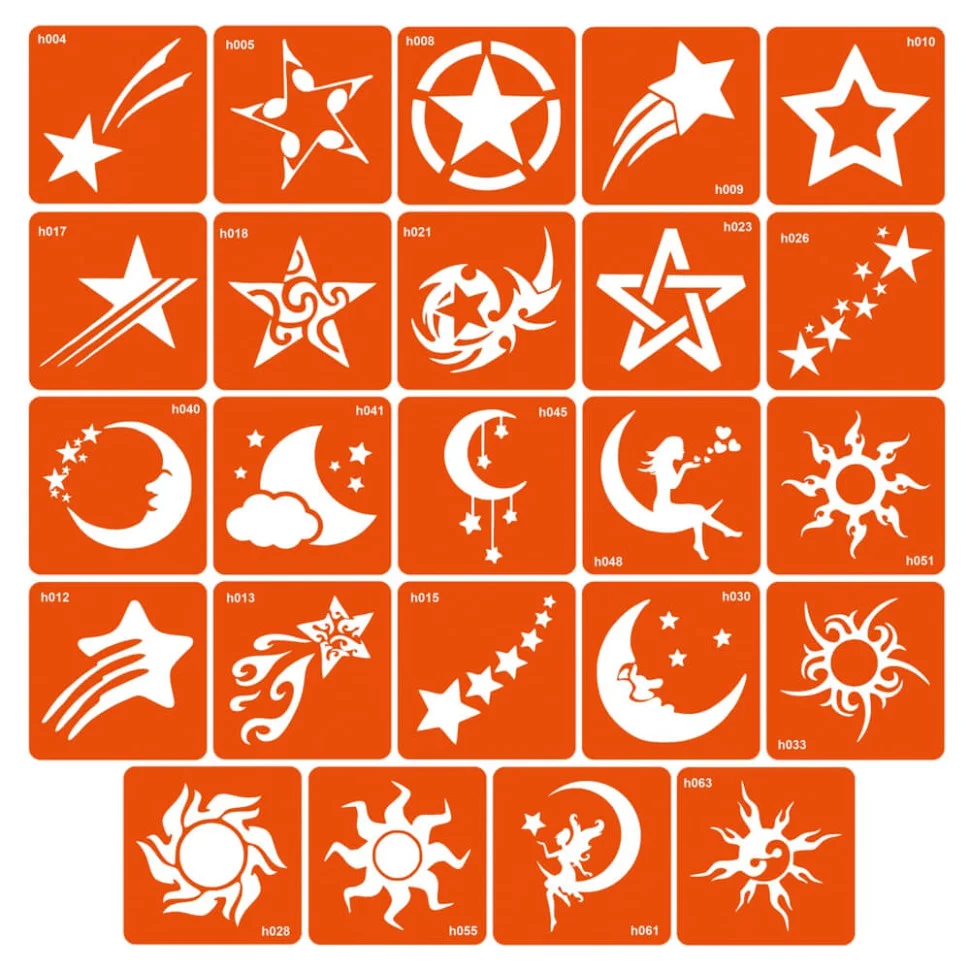 Колекція простих трафаретів зірок і космосу, 24 штуки в розмірі 6 на 6 см.