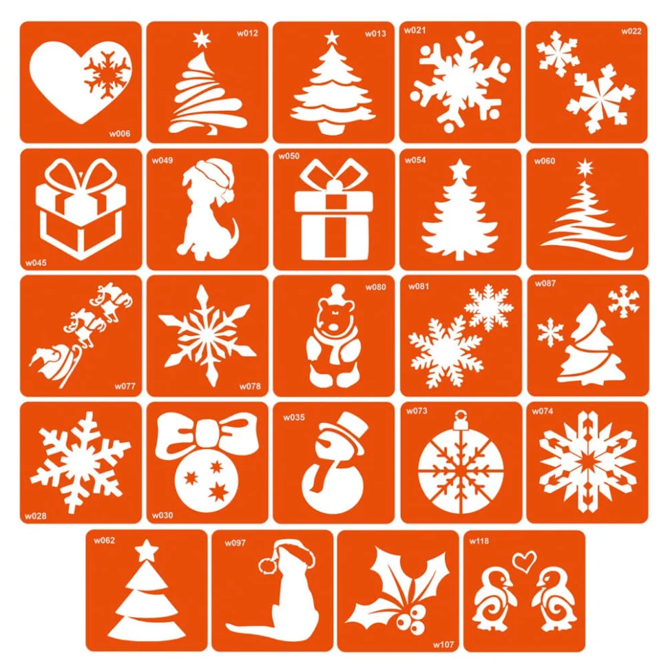 Колекція простих трафаретів зими, 24 штуки в розмірі 6 на 6 см.