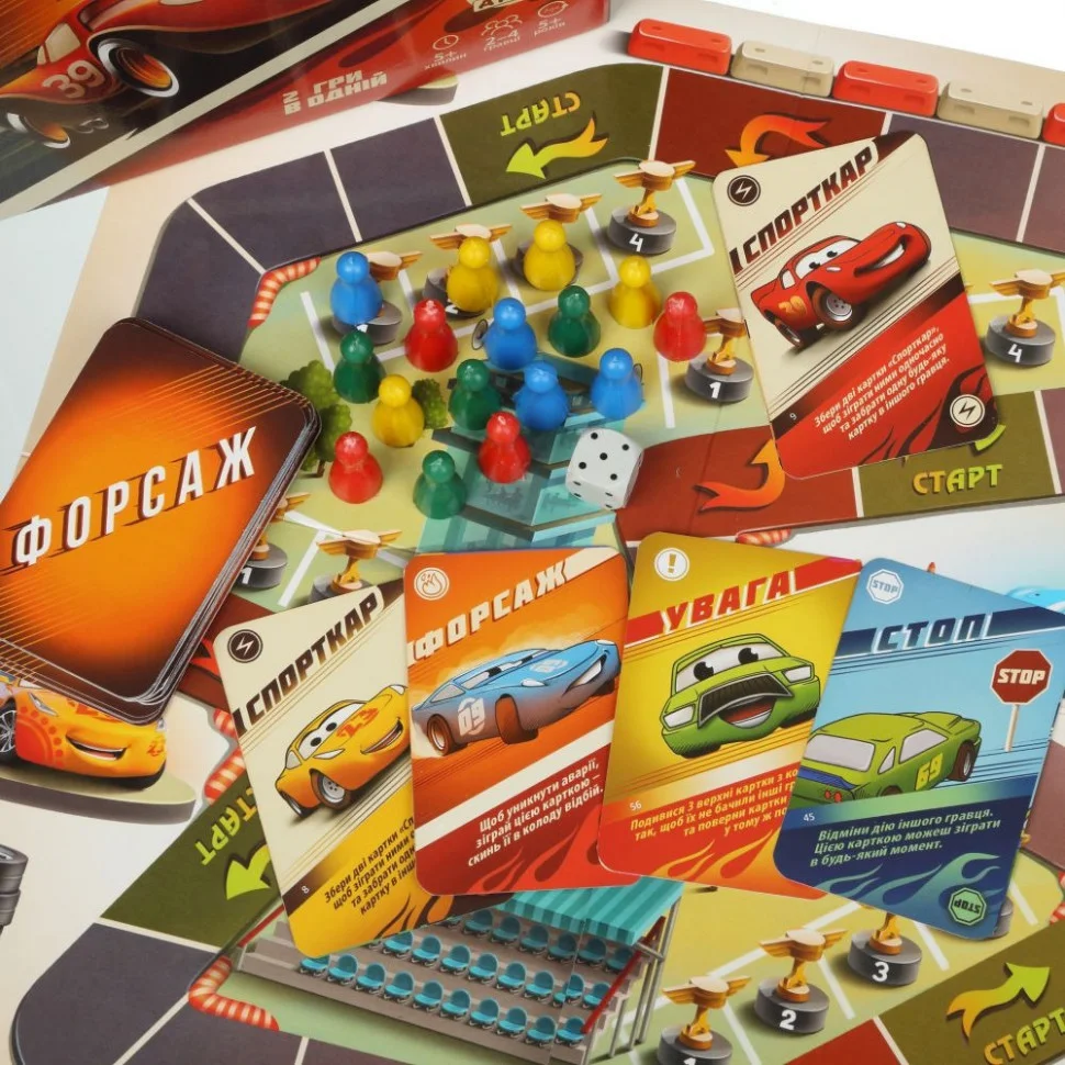 Друга гра стратегічна. Гравці по черзі беруть карти з колоди, поки хтось із них не витягне карту «АВАРІЯ». Від аварії гравця може врятувати тільки стрімка карта «ФОРСАЖ». Всі інші карти в колоді потрібні, щоб попередити прикру пригоду, і перешкодити суперникам дістатися до фінішу. Вам потрібно залишитися в грі до останнього і виграти. Весела гра, грати в яку можна навчитися за 5 хвилин. Для 2-4 гравців від 5 років.