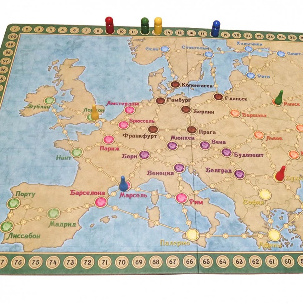 Дитяча настільна гра "Галопом по Європах" 0840 - універсальне розвага, в процесі якого необхідно буде якомога швидше пройти складений маршрут по містах Європи. Під час гри учасники повинні здійснювати перельоти між містами, а також рухатися автостопом з міста в місто. В результаті відвідувань міст Європи, розташованих на маршруті, гравці набирають рейтингові очки мандрівника. Ключове завдання - набрати 100 очок в рейтингу мандрівника, щоб стати переможцем. У комплектацію входить ігрове двостороннє поле, 4 гральні фішки, 4 фішки-маркери, 42 карти міст, 16 авіаквитків, а також 4 планшета рейсів на українській мові, 4 планшета рейсів на російській мові, і докладні правила гри. Універсальна настільна гра розрахована на веселу компанію від 2-х до 4-х гравців, буде цікава як хлопчикам, так і дівчаткам. Таке проведення часу відмінно розвиває посидючість, навички пам'яті, фантазію і асоціативне мислення.