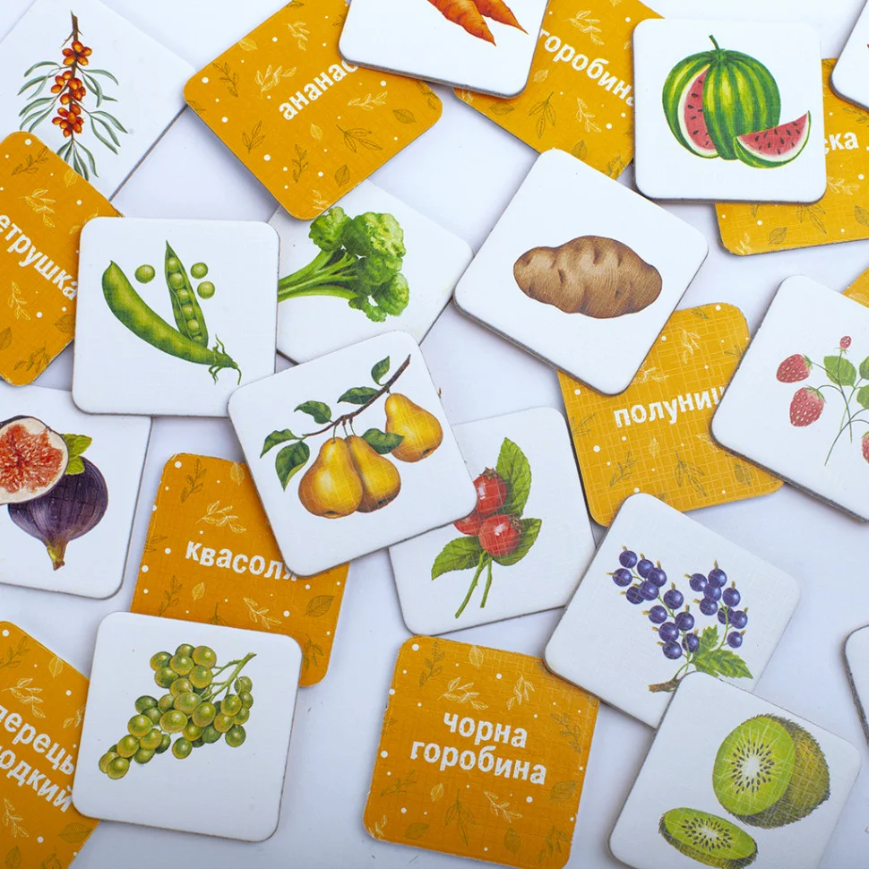Універсальна настільна гра "Груші на вербі" 960087, рекомендована для дітей старше трьох років, стане відмінним приводом, щоб провести час з друзями або рідними. Забава, розроблена з екологічно чистого, безпечного матеріалу, є справжньою знахідкою для любителів розвиваючих ігор. Комплект, представлений українською мовою, включає в себе 56 карток із зображенням овочів, фруктів і ягідок. Забава відмінно підійде для веселої компанії, підніме всім настрій, посприяє розвитку логічного мислення, пам'яті, уважності і кмітливості. Розглядаючи кольорові картинки, малюк буде вивчати нові назви, розширюючи кругозір і поповнюючи словниковий запас. Використовуючи набір, навчіть дитину сортувати і групувати однакові за певними ознаками фрукти і ягоди. Яскрава колірна гамма не дратує дитячі оченята, позитивно впливає на психоемоційний стан, формування естетичного сприйняття.