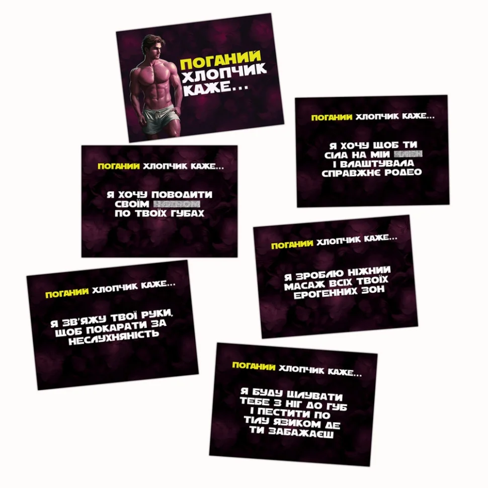 Хочу тебе (укр.): Пориньте у світ бажань та фантазій Хіба ви не мріяли збагатити своє інтимне життя, відкривши нові горизонти та дослідивши бажання один одного? Настільна гра Хочу тебе запрошує вас на захоплюючу подорож, де пристрасть та зв'язок між партнерами стають яскравішими та глибшими. Ця гра створена для того, щоб розпалити вогонь у ваших стосунках та наповнити їх новими емоціями. Уявіть собі вечір, коли ви з партнером поринаєте у світ фантазій, де кожна карта відкриває нові грані ваших бажань. Правила гри: простота та азарт Усередині коробки гри Хочу тебе ви знайдете все необхідне для незабутнього вечора. Колода карт із завданнями для нього та колода карт із завданнями для неї, а також правила гри, які допоможуть вам відразу поринути у процес. Кожна карта – це ключ до нового рівня близькості, спосіб зміцнити ваш зв'язок та наповнити стосунки пристрастю. Правила гри Хочу тебе прості та інтуїтивно зрозумілі, але водночас приносять масу задоволення. У комплект входять дві колоди карт: одна для розпусної дівчинки, інша для поганого хлопчика. Перед початком гри ви вирішуєте, хто сьогодні візьме ініціативу у свої руки – чоловік чи жінка. Той, хто вестиме вечір, випадково вибирає карту з відповідної колоди і виконує завдання. Ці завдання розроблені так, щоб ви змогли повністю задовольнити одне одного, створюючи незабутні моменти. Гра триває стільки, скільки ви забажаєте: від кількох хвилин до цілої ночі пристрасті. Кількість гравців – двоє, що робить гру ідеальною для пар, які бажають зміцнити свої стосунки та створити нові спогади. Кожен раунд – це крок назустріч новим відкриттям та глибокому порозумінню. Ваші нові секрети в невеликій коробці... Ця гра - ідеальний подарунок для тих, хто хоче привнести у своє життя яскраві емоції та незабутні відчуття. Хочу тебе допоможе вам відкрити нові грані своєї сексуальності, вивчити фантазії партнера та створити атмосферу довіри та відкритості. Вона стане вашим надійним союзником у створенні нових спогадів та зміцненні вашого зв'язку. Хочу тебе - це не просто гра, це можливість заглянути в найпотаємніші куточки душі партнера, відчути себе єдиним цілим і насолодитися кожним моментом разом. Такі ж цілі переслідують ігри Ніч для двох (укр.) і Ще ближче... (укр.) тому варто обов'язково звернути увагу і на них. Придбайте Хочу тебе і дозвольте собі та вашому партнеру насолодитися цією дивовижною грою, і ваше інтимне життя заграє новими фарбами!