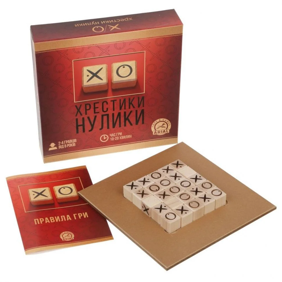 Мета гри - скласти ряд кубиків з 5 своїх символів (Х або О) по горизонталі, вертикалі або діагоналі. Все було б просто, якби кубики були нерухомі, але кожен хід гравці змінюють розташування кубиків, зрушуючи один з рядів. І в будь-який момент ви можете зовсім несподівано опинитися на межі поразки! Якість гри бездоганно: 25 дерев'яних кубиків з хрестиками - нулями зроблені вручну з бука дуже ретельно і привабливо, а підставка для них - ідеальна.