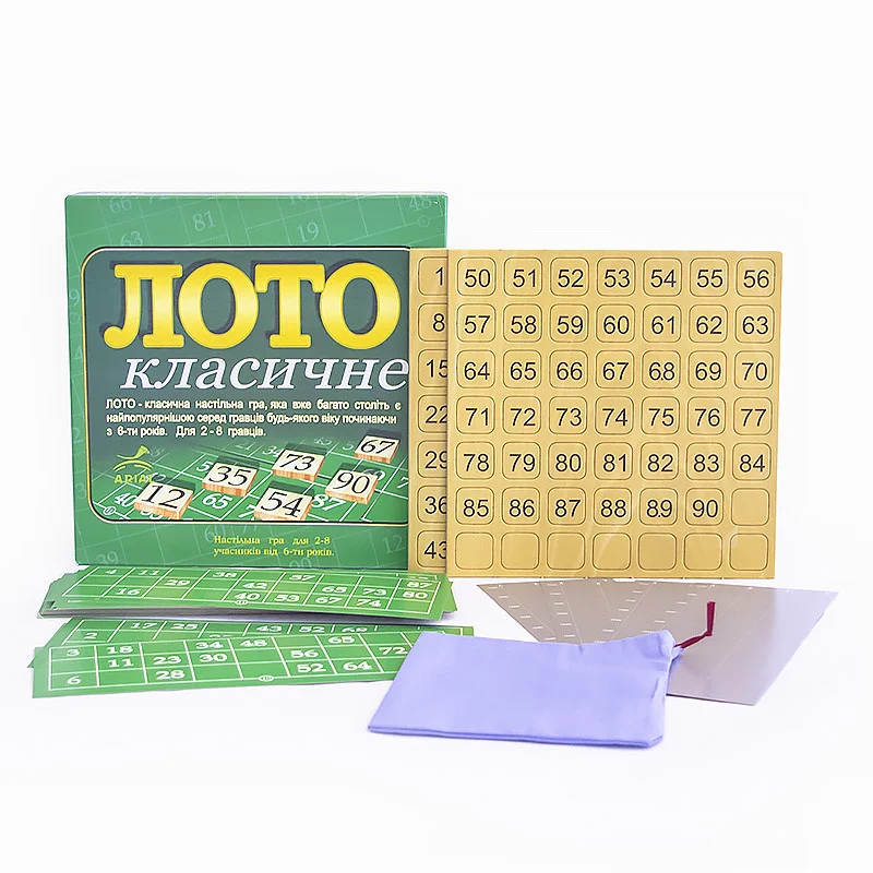 Настільна гра Arial Лото класичне 910046, яка не потребує представлення, не залишить Вашої дитини байдужою. Захоплююча популярність у всьому світі, захоплююча настілка, обожнювана і серед дорослих, і серед діточок, стане ідеальним приводом, щоб зібратися в колі близьких або друзів в один з вечорів. У подібних іграх не обійтися без винахідливості та кмітливості, які стануть у нагоді Вашому чаду в реальному житті, допоможуть йому навчитися самостійно та швидко приймати рішення. Лото розвиває логічне та аналітичне мислення, зорового сприйняття, активізує слухову та тактильну пам'ять. Для створення набору український виробник Arial застосував екологічно чисту сировину, без небезпечних дитячого здоров'я, токсичних барвників. Кожен учасник вносить у банк оплату, після чого отримує картку з цифрами, а ведучий гри витягує з мішечка плашки, називаючи число. Якщо гравець має таке число на картці, то він накриває його фішкою. Виграє та забирає весь банк той, хто першим закриє усі осередки на своїй ігровій карті.