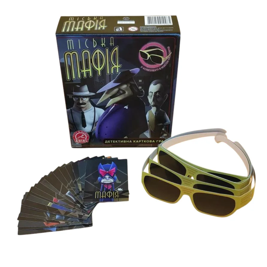 Настільна гра Arial Міська Мафія 910985 з нової колекції української торгової марки Arial - це ідеальний подарунок для будь-якого юного детектива старше 10-ти років. На учасників чекає захоплююча пригода, яка має психологічний характер, з боротьбою між мирними жителями і представниками мафії, з'ясовуваннями злочинів і викриттями мафіозі. Якщо команда грає роль мафії, то учасники повинні проявити винахідливість, обережність і спритність, щоб довести свою невинність. Орієнтований на діток старшої вікової групи, ігровий комплект підійде для компанії від 2-х до 4-х чоловік. Набір від українського виробника Arial містить гральні картки і правила, доповнені красивою, подарунковою коробкою. Гра націлена на виховання командного духу, розвиток соціально-комунікативних навичок, асоціативного мислення, швидкості реакції і спритності.