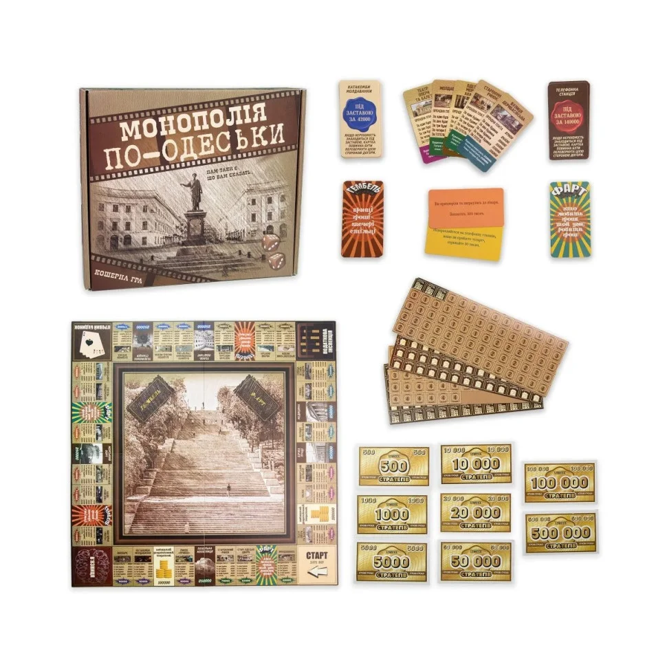 "Монополія по-Одеськи" (Strateg 30318) - це гра для того, шоб Ви хоч десь могли робити гроші. Пропонуємо Вам стати монополістами будь-якої галузі, заробити можливий капітал або залишитися єдиним гравцем, який не став Банкротом.