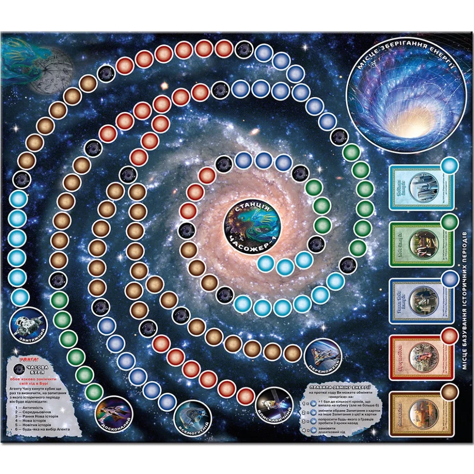 Ідеально підходить для дитини старше восьми років, цікава настільна гра "Навколо світу". Історичний квест 82296 - відмінний вибір в якості презенту, який сподобається і хлопчикам, і дівчаткам. Якщо Ваш непосида обожнює історичні пригоди, чари і античність, то такий набір його не розчарує. Захоплююча стратегія «Вокруг света» - це оригінальна, настільна гра, представлена в стилі історичного квесту, яка дозволить гравцям побувати у найвіддаленіших куточках Всесвіту і в різні історичні періоди. Завдяки цьому набору Ваша дитина зможе дізнатися багато нового про історію, починаючи від античності і закінчуючи сьогоднішнім днем. В процесі гри на космічних тимчасових кораблях Блискавичний, Всемогутній, Досконалий, Переможний і Переможець гравці, яких називають Агентами часу, зможуть відправитися в часовий Вир, щоб знешкодити небезпечного лиходія Ігоря Часоіденко. Неймовірно популярна забава на тематику історії та подорожей сподобається не тільки дітям, а й дорослим, стане відмінним приводом, щоб провести час з сім'єю.
