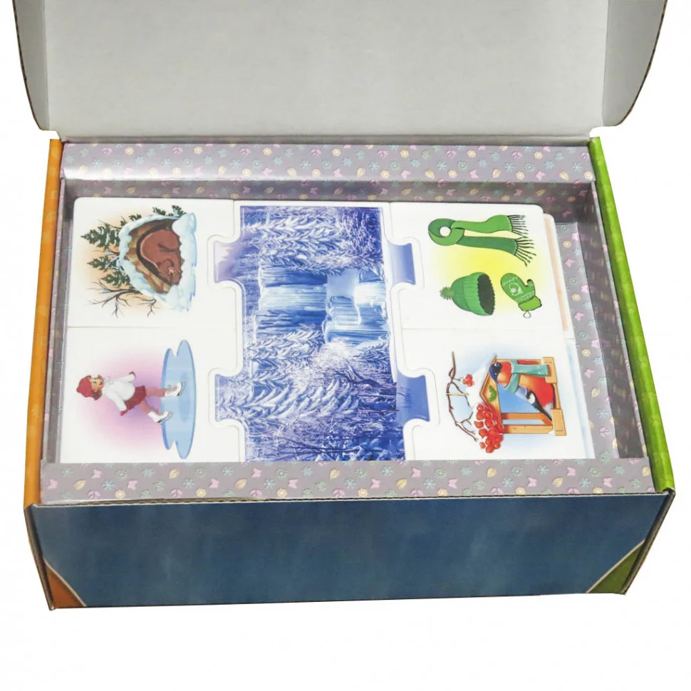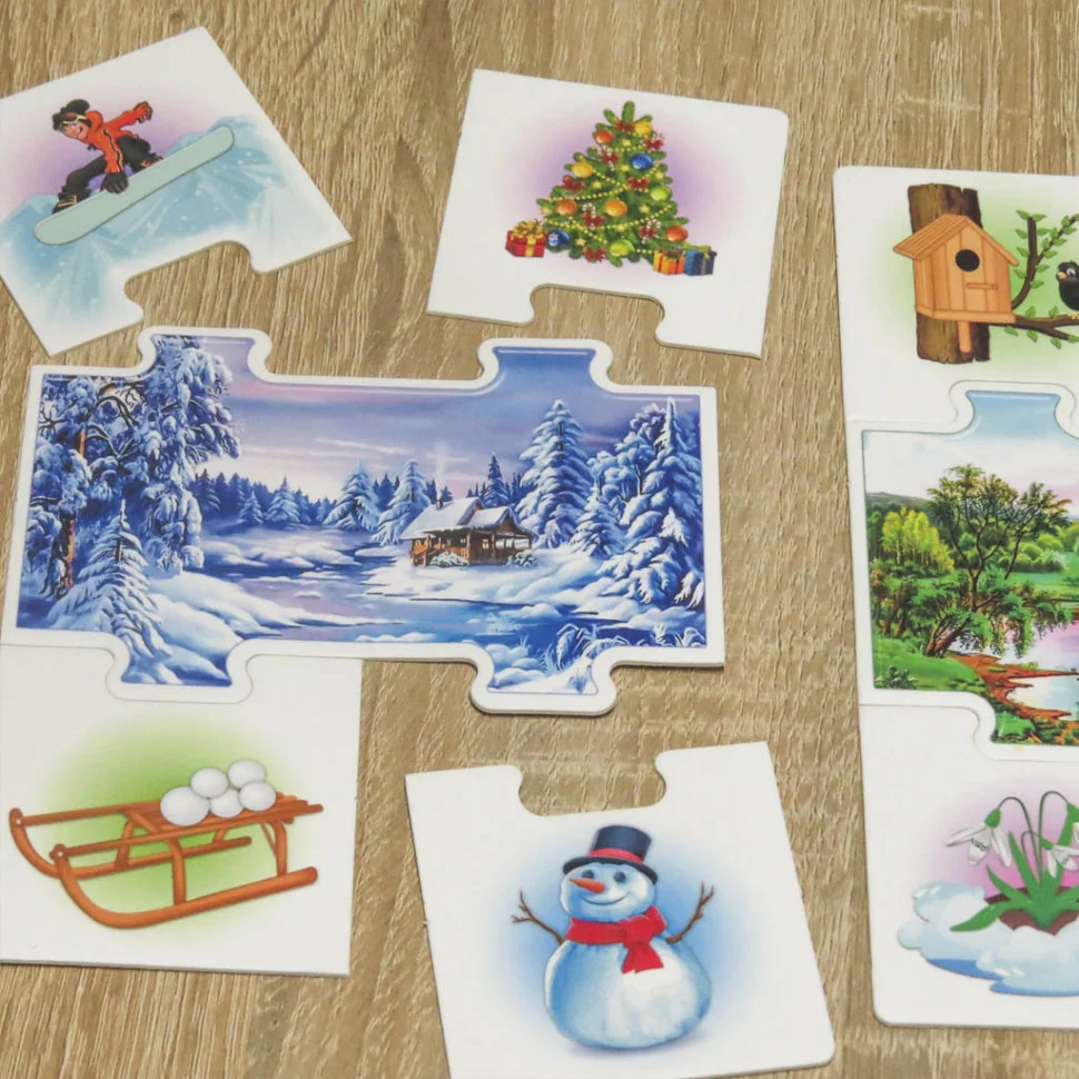 Призначена для дітей старше трьох років, цікава настільна гра "Пори року" 0567 - навчально-розвиваюча забава, яка познайомить Вашого допитливого дошкільника з порами року і характерними для них природними явищами. За допомогою гри Ваш непосида дізнається всі назви місяців, буде в ігровій формі запам'ятовувати, що роблять люди і тварини взимку. Подібна розвага не тільки розвиває у дитини спостережливість, увагу і аналітичні здібності, а й допомагає поповнити словниковий запас і розширити кругозір. У комплектації передбачено 10 карток-блоків з малюнками (50 елементів), декоровані в привабливій гаммі. Для виготовлення набору виробник використовував екологічно чисту сировину, безпечну для дітей, яка не викликає алергію і неприємних реакцій. Оновлена версія класичної, неймовірно популярною забави "Пори року", неодмінно припаде до смаку Вашій дитині.