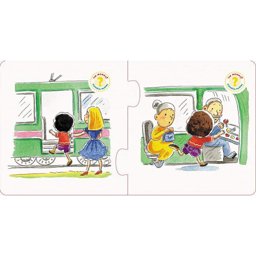 Граємо та навчаємо дитину правильно поводитися в різних місцях. Уважно розглядаємо зображення на одній половинці пазла і знаходимо другу половинку зі схожою ситуацією. З'єднуємо пазли і порівнюємо поведінку дитини на двох картинках. Пояснюємо, як треба поводитися в цьому місці. Наклеюємо наліпки-відповіді.