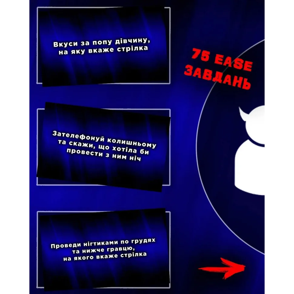 У грі 150 найцікавіших завдань та запитань, у 2 рівнях складності (EASE / HARD). Також є 50 карток-ускладнень, які зроблять гру ще цікавішою.