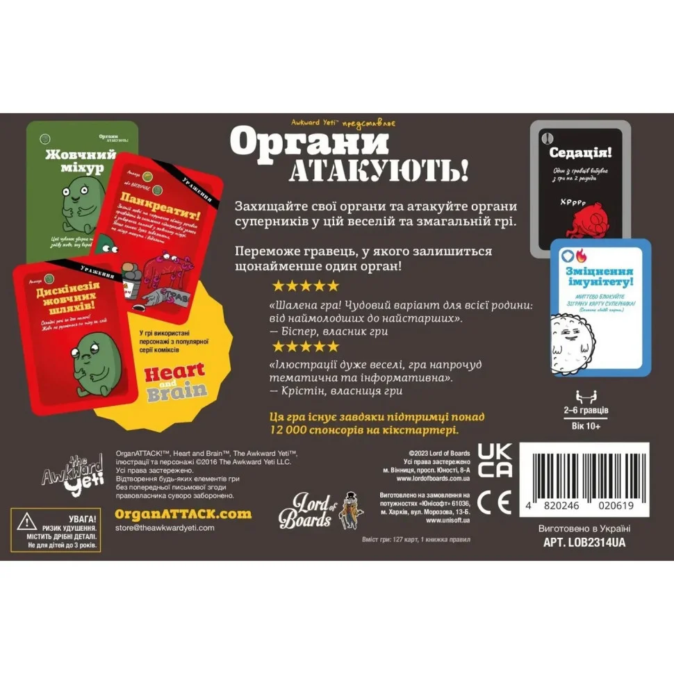 Organ ATTACK! (Органи АТАКУЮТЬ!) - жартівлива карткова гра для 2-6 гравців, тривалістю ~15 хв. Мета - позбавити суперників усіх органів, використовуючи карти хвороб, некрозу та захисту. Гра не має на меті образити, а гумор медичний та комічний.