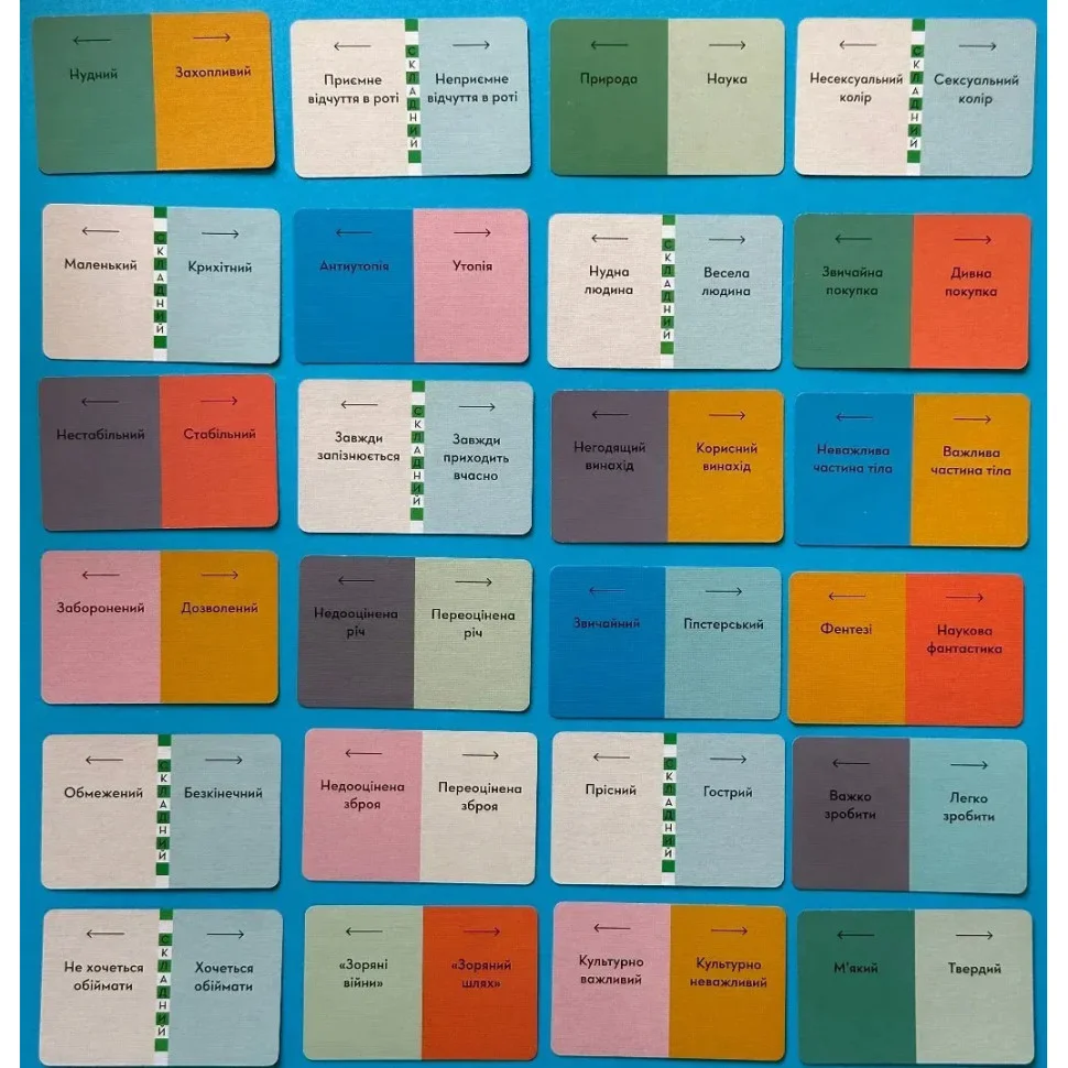 Хоча сама гра неймовірно проста, вона створює простір для гарячих суперечок, бурхливих обговорень, безлічі асоціацій і навіть магії. Механіка "Колесо" додає ігровому процесу особливої атмосфери, дозволяючи весело і атмосферно провести час у приємній компанії.