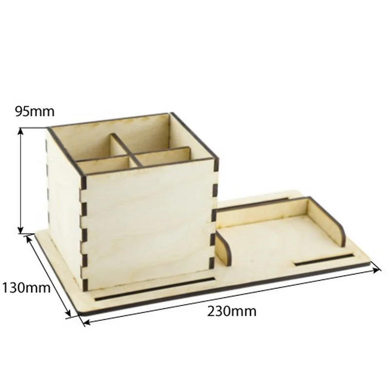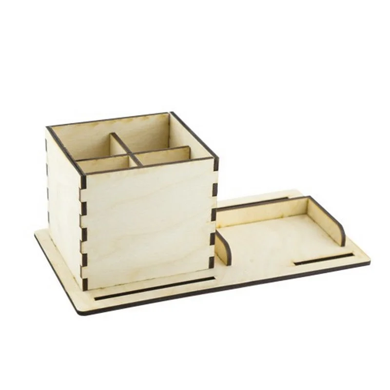 Набір-конструктор деталей з фанери товщиною 4 мм, для складання органайзера-підставки, основним призначенням якої є організація зберігання візитівок та різних письмових принад (кулькових ручок, олівців, пензликів, ножиць та ін.)