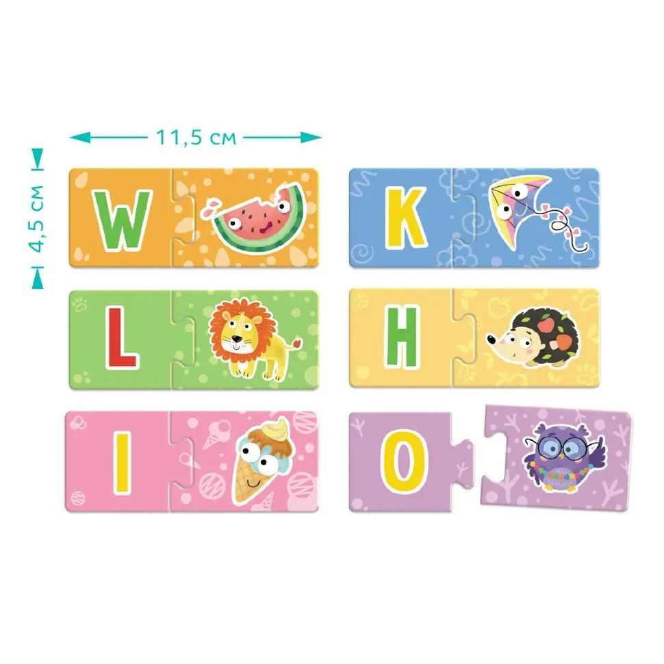 Пазли-половинки Англійский алфавіт, ТМ Dodo можуть вважатися першими пазлами малюка.
