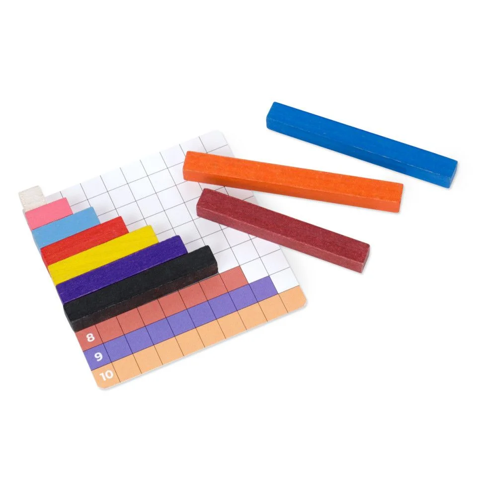 Набір складається з 56-ти дерев'яних паличок 10-ти різних кольорів, з січенням 10х10 мм, які відрізняються довжиною та кольором. Палички однієї довжини виконані в одному кольорі. Чим більша довжина палички, тим більше числове значення вона виражає - найменша паличка ("одиничка") довжиною 10 мм позначає цифру 1, кожна наступна є довшою на 10 мм і позначає наступну порядкову цифру: рожева – цифру 2 (20 мм), блакитна – цифру 3 (30 мм), і т. д.