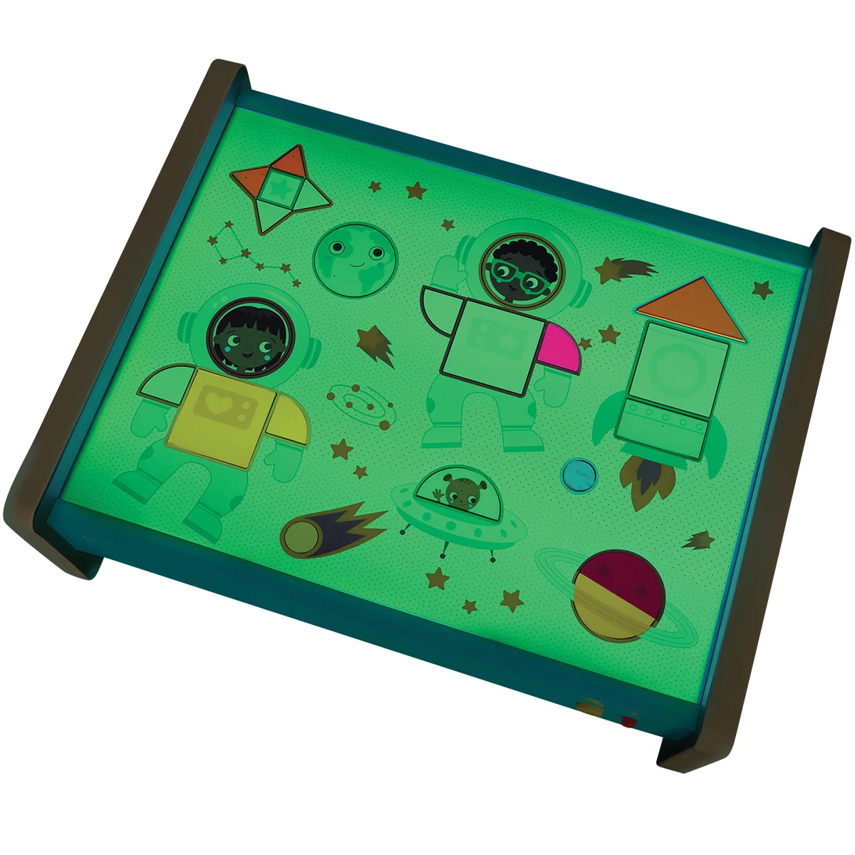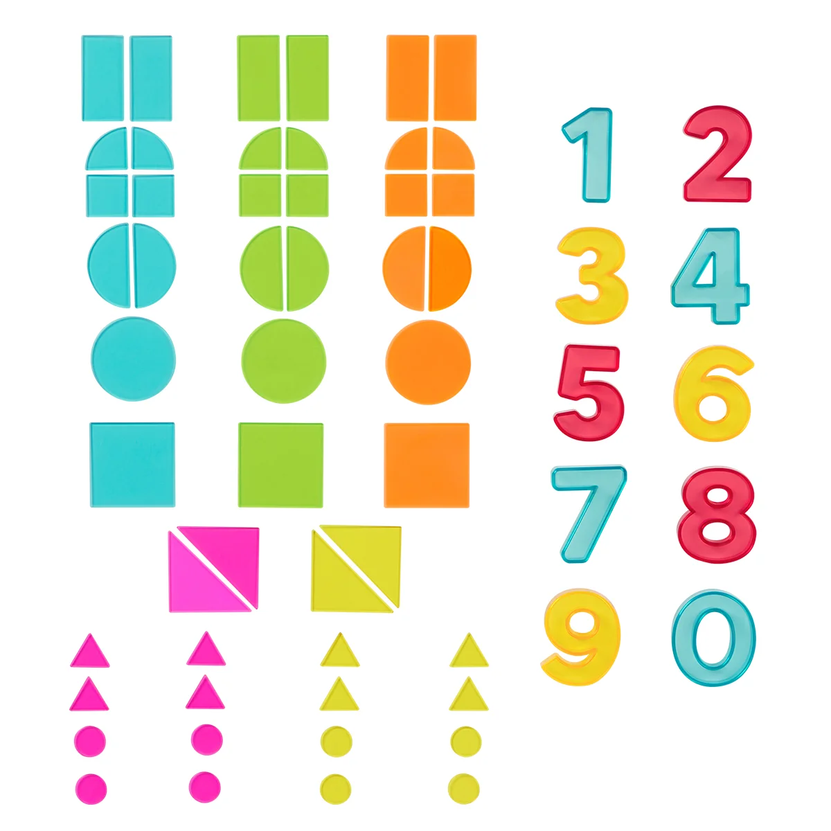 Увімкніть світловий центр — і прозорі фігури наповняться кольором та світлом. Кольори заграють, форми стануть виразнішими, а цифри — помітнішими та цікавішими для вивчення. Малюйте, викладайте, експериментуйте — усе це в яскравому сяйві, яке привертає увагу та стимулює уяву.