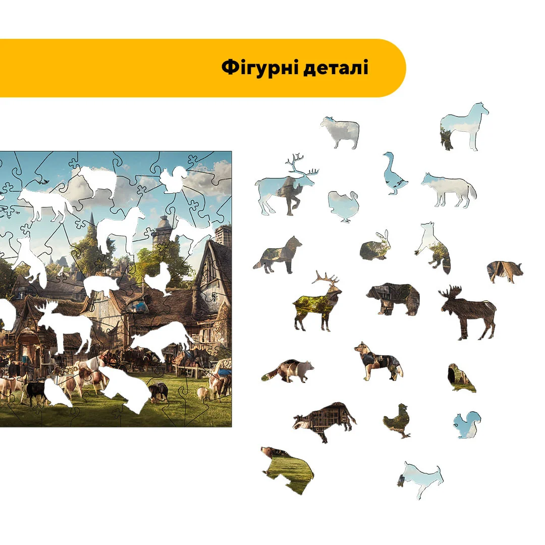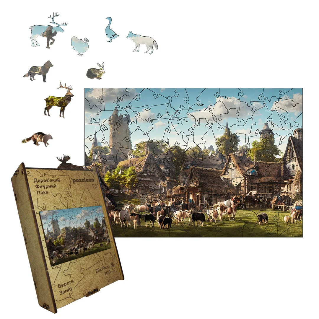 Пазл дерев'яний 'Береги Замку': допоможіть знайти всіх таємничих мешканців цього захоплюючого замку, складаючи цей захоплюючий образ!