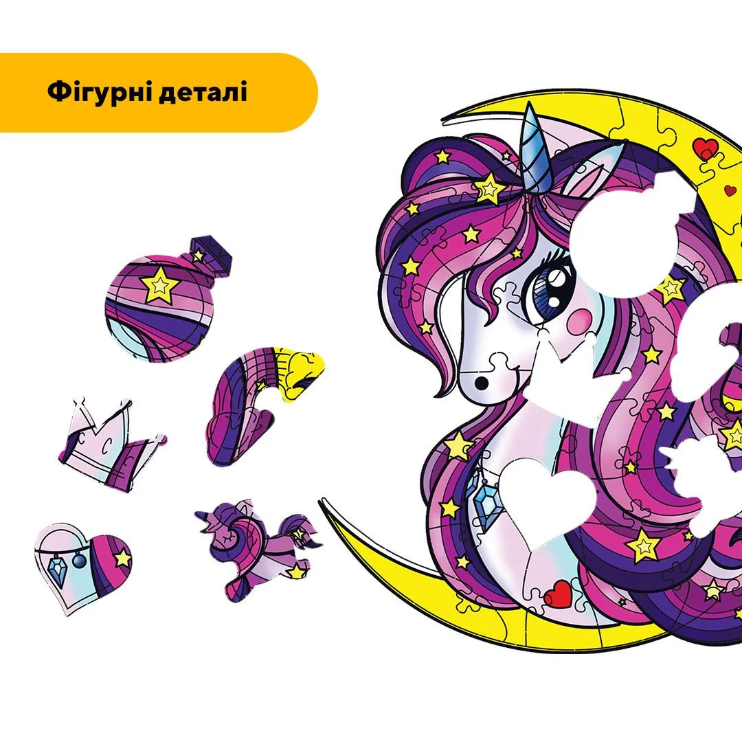 Пазл дерев'яний 'Чарівний Єдиноріг': окуніться у світ мрій та казок, збираючи цю чудову картину з вигадливим та чарівним єдинорогом!