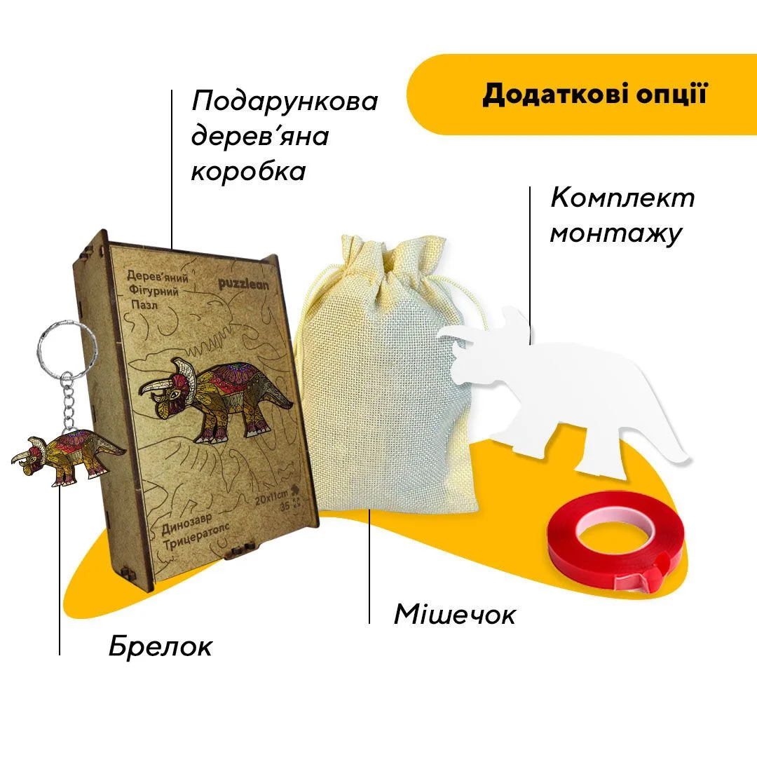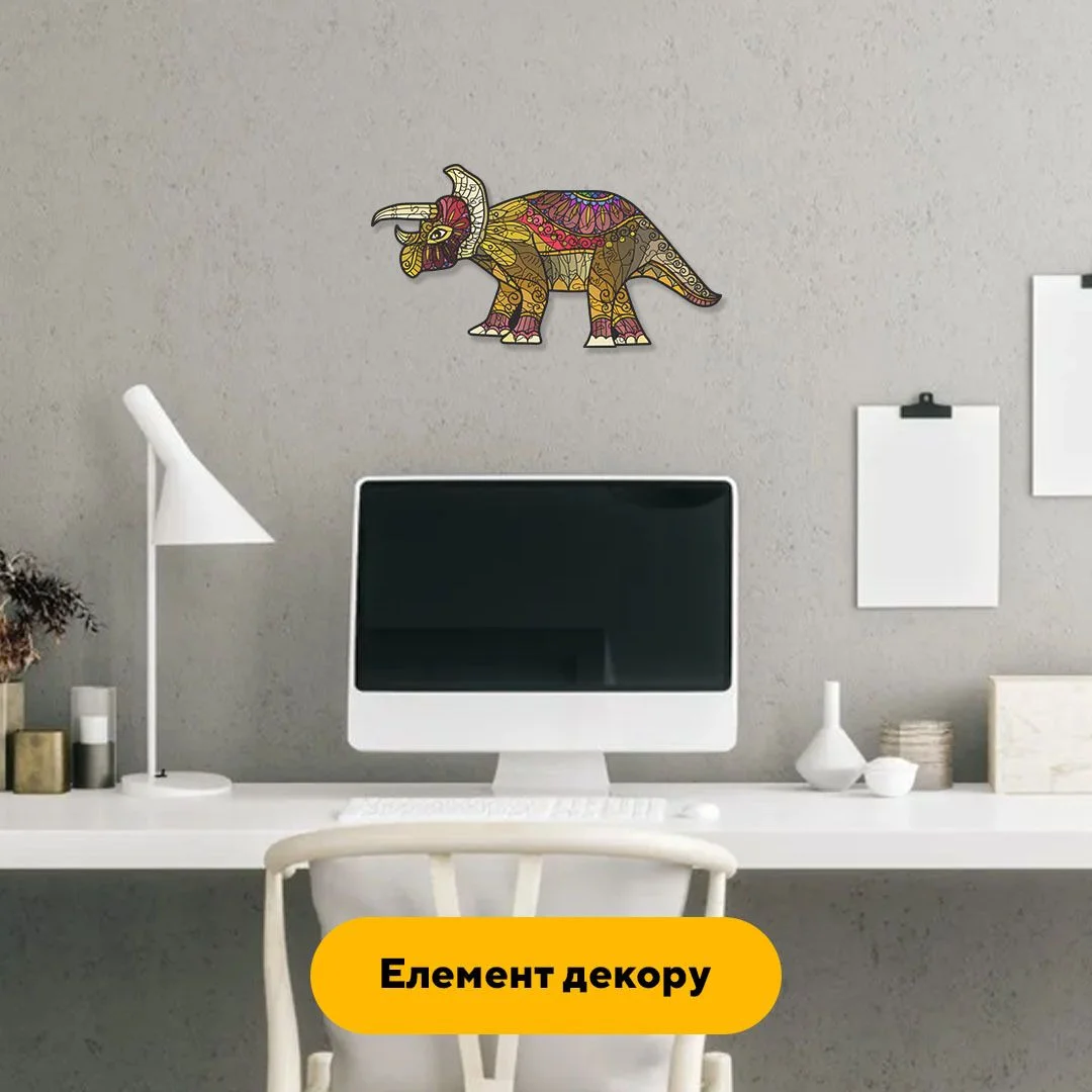 Пазл дерев'яний 'Динозавр Трицератопс': відправтеся у захопливий світ доісторичних тварин, збираючи цей захоплюючий образ могутнього трицератопса, який завоював світ своєю величчю та міцністю!