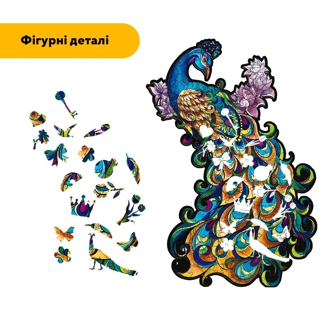 Пазл дерев'яний Колоритний Павлін, А5, Картонна коробка