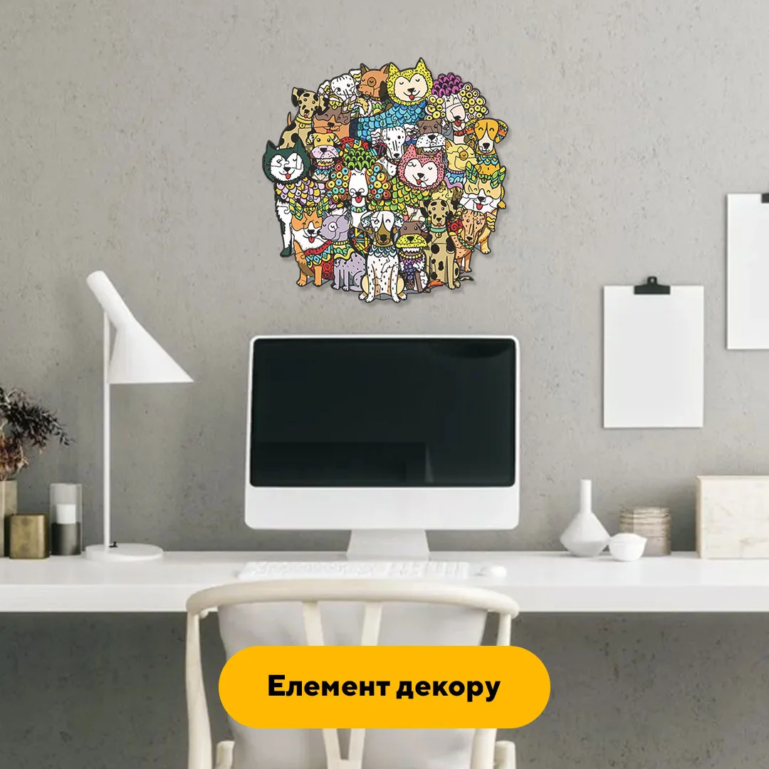 Пазл дерев'яний 'Планета Цуценят': розгадайте цей захоплюючий образ, де кожен шматок простору населений миленькими цуценятами