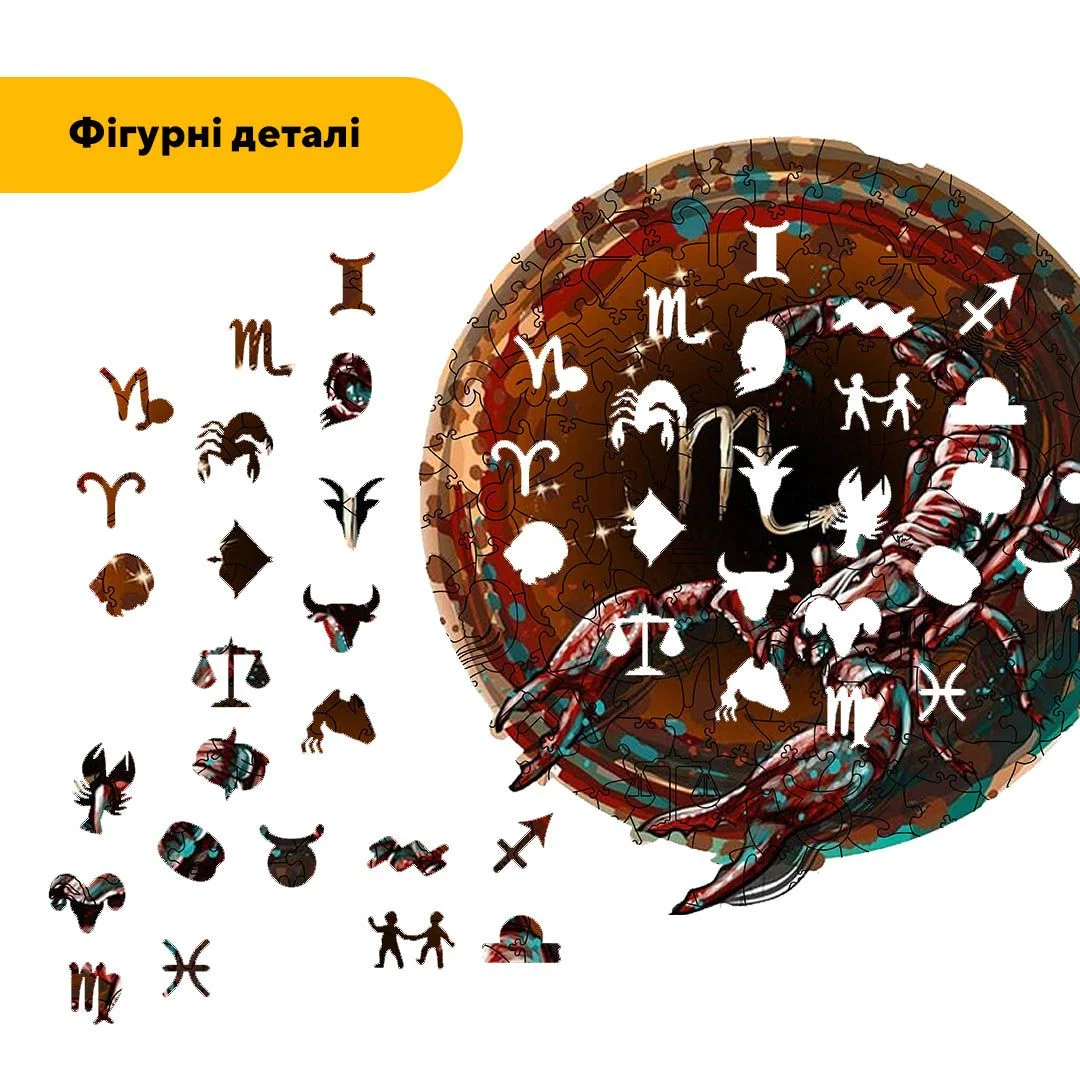 Дерев'яний пазл з образом Скорпіона відображає сильну волю та наполегливість у досягненні своїх цілей