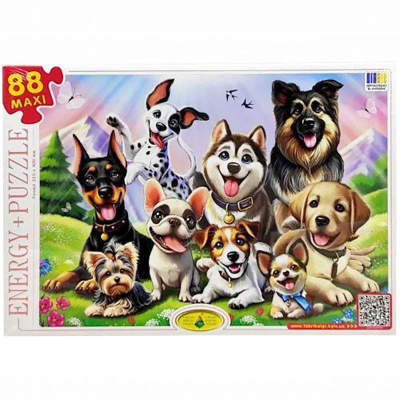 На величезному ігровому полі розміром 300 х 420 мм зображений сюжет з казки Пазли 88. Поле разрезанно на 88 частин, з яких потрібно зібрати цілу картинку.
