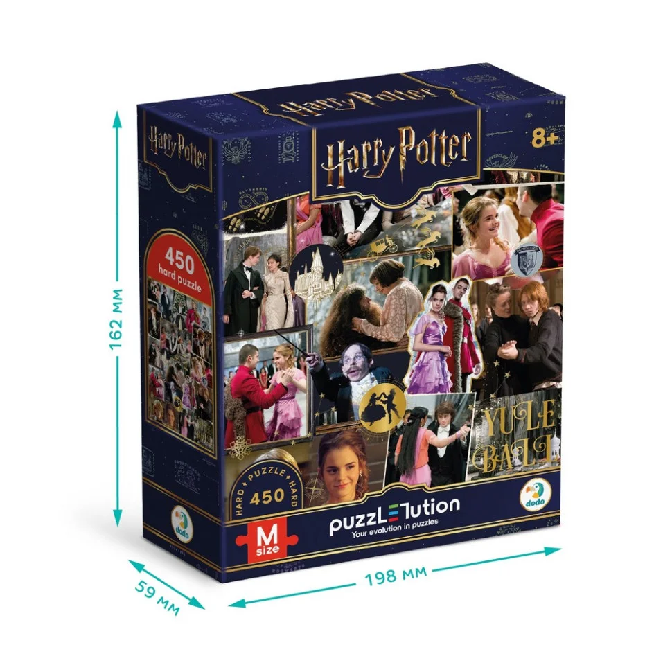 Пориньте у чарівну атмосферу Різдвяного балу з фільму про Гаррі Поттера, складаючи яскравий пазл “Harry Potter: Yule Ball” з 450 деталей. На зображенні - улюблені персонажі в елегантних образах, сцени танців, емоційні моменти та магічні декорації Гоґвортсу.