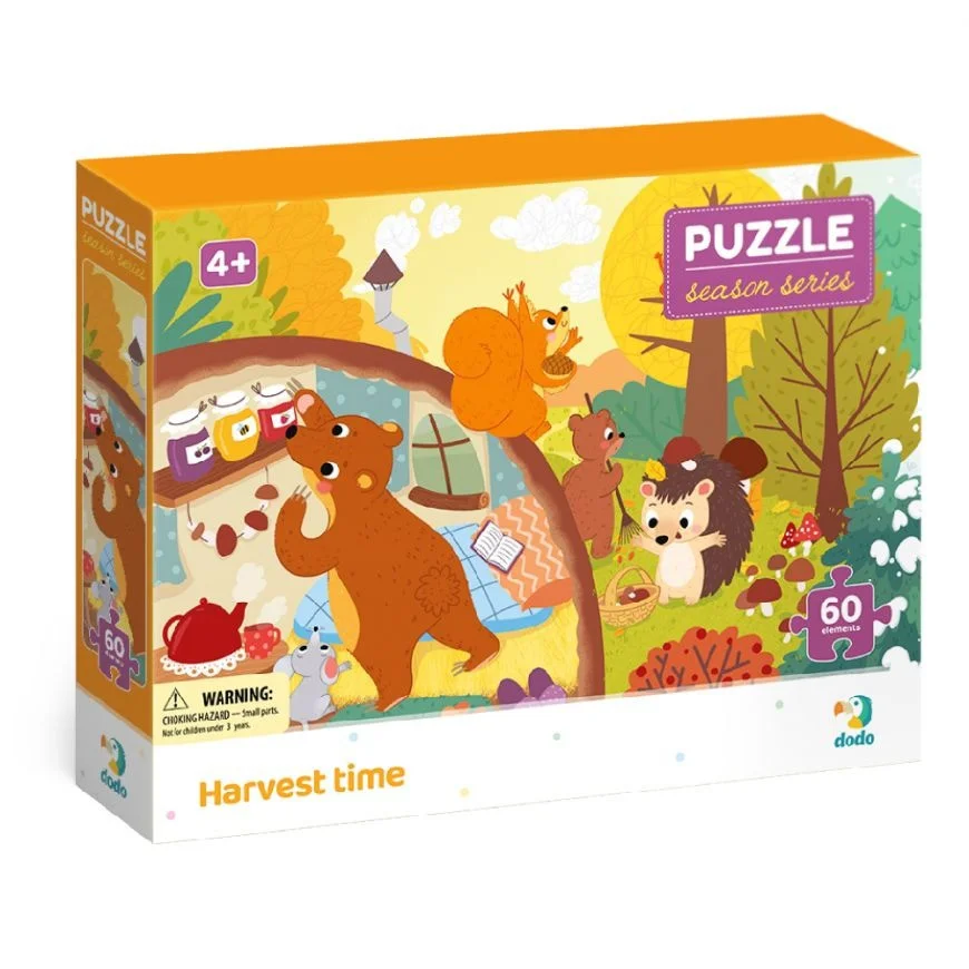 Серія "Пори року" - новинка Dodo Toys. Яскраві пазли для дітей від 4-х років, розповідають історії пригод милих тварин. Зберіть всі чотири пазли серії, щоб скласти їх в єдину картинку!