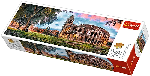 Панорамний пазл з 1000 деталей Колізей на світанку. Після складання пазлу буде створена картинка розміром 97х34 см. Висока якість, насиченість кольору і безпечне складання забезпечується каландровим світловідбиваючим папером, покритим екологічними харчовими фарбами]]>