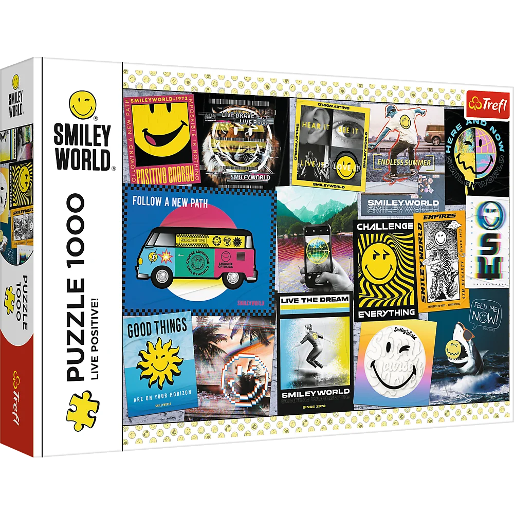 Живіть позитивно! - Головоломка 1000 елементів - це чудова головоломка з серії Smiley World. Головоломки зображують символ широкої посмішки, який був увічнений на фотографіях та плакатах. Після прокладки буде створено зображення з розмірами: 683x480 мм.