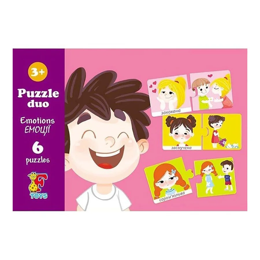 Розвиваючий пазл легко і швидко навчить дітей розрізняти емоції та настрій. Великі пазли допоможуть покращити дрібну моторику Вашого малюка. Комплектація: 12 елементів пазлів.